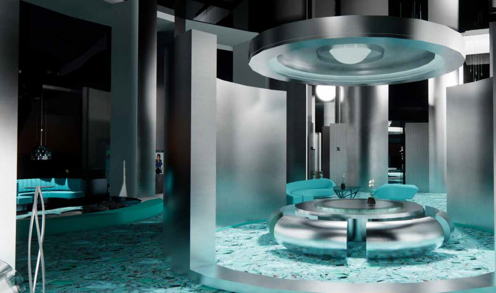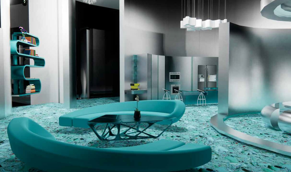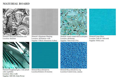 The residence addresses the usage of recycled materials in every aspect of its development. State of the art futuristic technologies are included to minimize labour requirements and waste. A highly sophisticated desalination device eliminates the issue of clean water shortage. Solar incorporated glass encasing the structure, ensures maximum heating and cooling efficiency at all times.